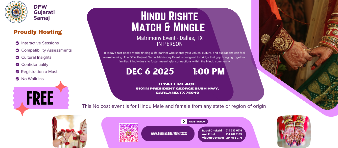 DFW Gujarati Samaj, Inc. (“Samaj”) is a Texas based 501 (c) Non-Profit organization. Founded in 1991, our mission has been to provide a platform for Gujaratis from all regions of Gujarat, India, who now call the DFW metroplex their home.